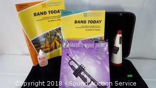Marked "YTR200AD" and "939524".Comes with hard case, valve oil, straight mute attachment, and 3 books. Approx. 19" x 6".