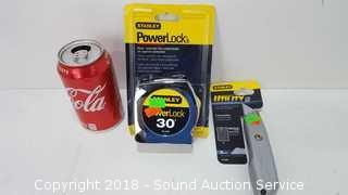 Lot #0116: NIP Stanley Power Lock 30ft Tape Measure & Knife