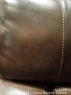 By Trayton Furniture. Retail $899.99. Has a couple wear spots in the upholstery, refer to photos, otherwise in good condition. Manufactured October, 2016. Dark brown color. Approx. 36" H, 86" L, 37" D.