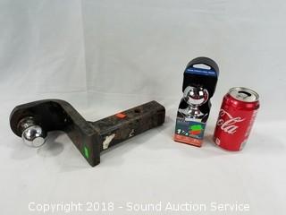 Fits a 2" receiver. Hitch is a Brophy, 750lbs max tongue weight, 7500lbs max GW. 2" and 1-7/8" Balls.
