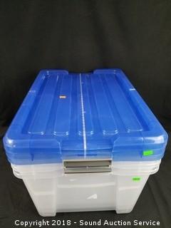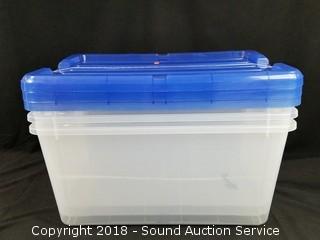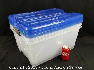 Lot #0048: (3) 45QT Clear Plastic Storage Totes w/Lids