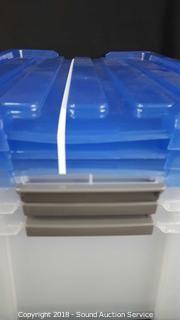 Lot #0377: (3) 45QT Clear Stacking Storage Totes w/Lids