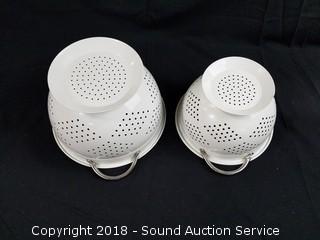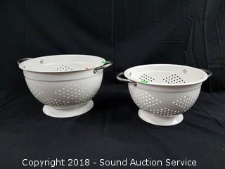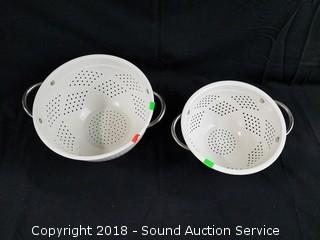 Lot #0313: 8.5" & 10" White Enamelware Colanders
