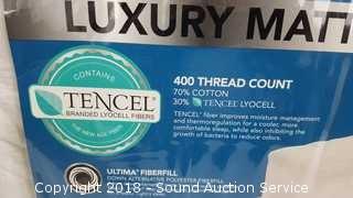 Comes in original packaging. 400 thread count, 70% cotton, 30% Tencel. King 76" x 80".
