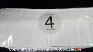 1 flat, 1 fitted, 4 pillowcases. Comes in original packaging.