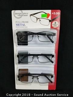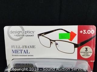 Lot #0166: Foster Grant Full Frame Metal +3.0 Reading Glasses