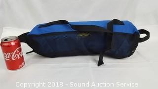 Lightweight, compact, comes with bag. Blue color.