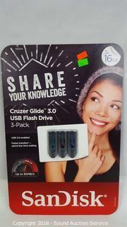Lot #0208: NIP 3pk 16GB Cruiser Glide 3.0 USB Flash Drives