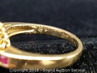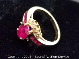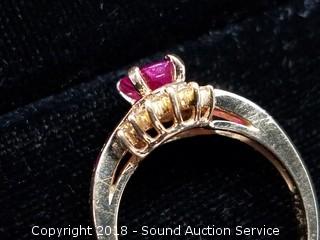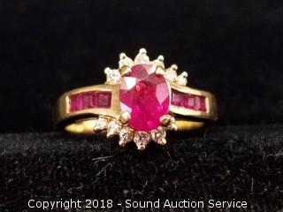 Lot #0360: 14k Gold Burmese Ruby & Diamond Ring S:6.5