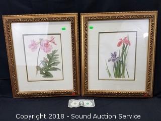 Lot #0037: 2 Framed & Matted Floral Lithographs