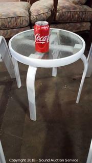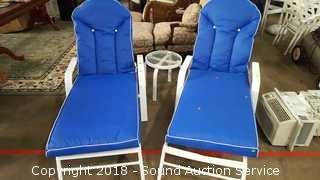 Lot #0010: 2 Patio Lounge Chairs w/Cushions & Small Table
