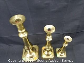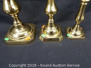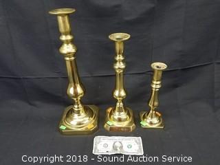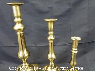 Lot #0171: 3 Heavy Brass Graduating Candle Sticks
