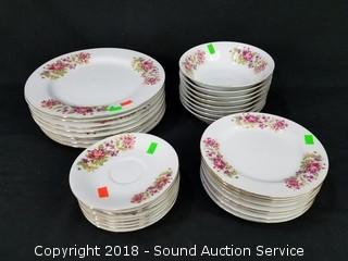 Lot #0331: 32pc. Gold Rimmed Floral Fine China Set