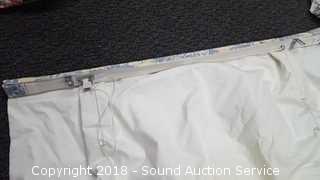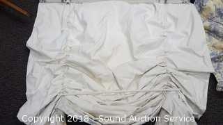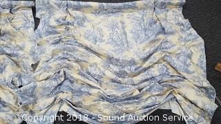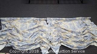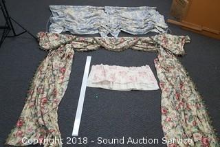 One is for a bay window, 90" long curtains, 100" long valance x 34" corners. One is 52" long valance. Two 43" x 64"drawstring curtains.