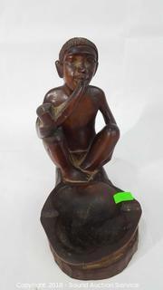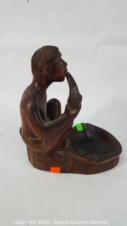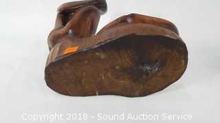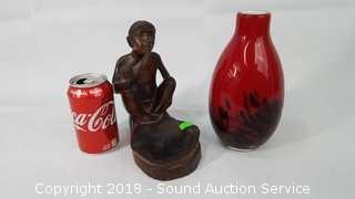 Lot #0092: Carved Wooden Sculpture & Art Glass Vase
