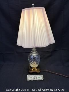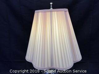 Scalloped shade. Approx. 24" H, 4-1/2" diameter base, 13" diameter shade.