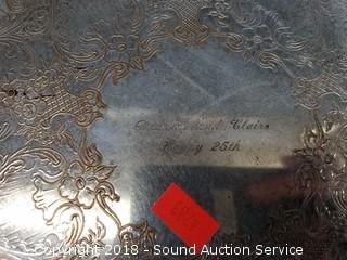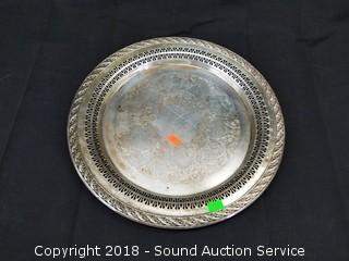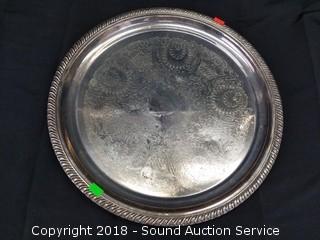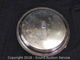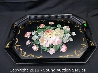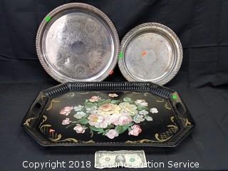 Lot #0100: Hand Painted Tin Tray & Silverplate Chargers