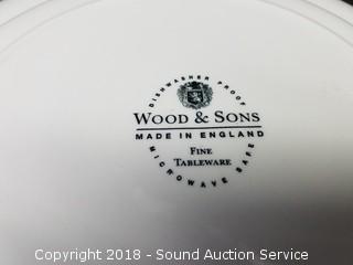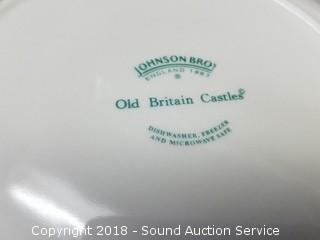 Images of Old Britain Castles. Includes: 4 Dinner Plates, 4 Salad Plates, 4 Snack Plates, 1 Platter, 1 serving Bowl, Cream & Sugar. Also comes with small amount of similar dishes Wood & Sons and Crown Ducal.