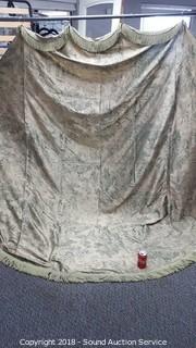 Lot #0123: Large Round Green Coverlet & Down Throw Pillows