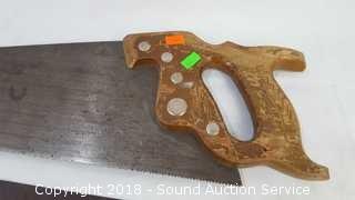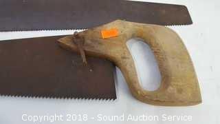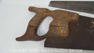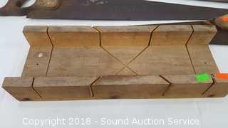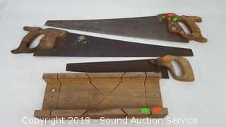Lot #0362: Miter Box w/3 Hand Saws
