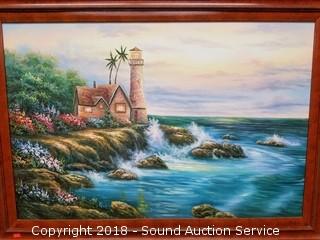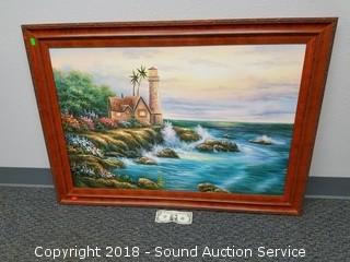 Lot #0045: Original Oil on Canvas Lighthouse Artwork
