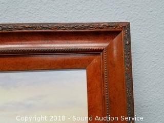 Professionally framed. Overall approx. 29-1/2" x 42". Frame fits a 24" x 36" piece of artwork.