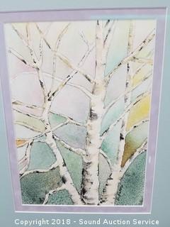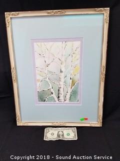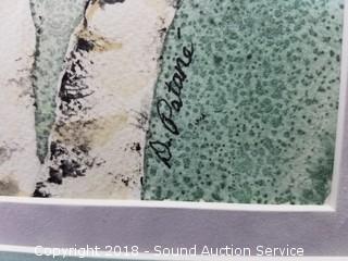 Professionally framed and matted with museum glass. By "D. Patane". Watercolor birch trees, nice old frame. Approx. 21" x 17".