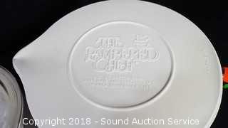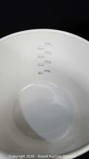Pampered Chef is a 2QT mixing bowl/measuring cup, 1QT Pan, and (3) Pyrex 1 Cup & 2 Cup Measuring Cups.