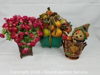 One is Thanksgiving, One is fruit and other is Roses. Largest is 15" tall.