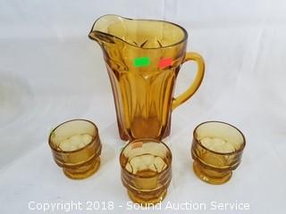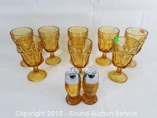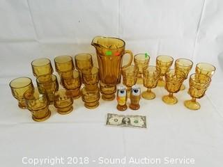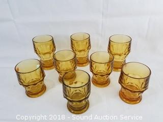 Lot #0219: Vtg. Amber Glassware Sets