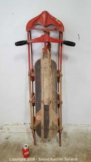 Lot #0113: Vtg. Hawthorne Wood & Steel Runner Snow Sled