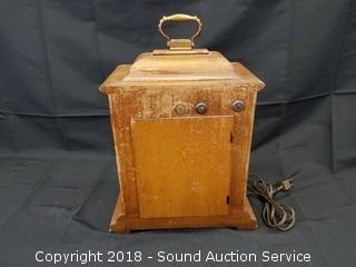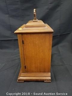 Still wind up. Needs serviced, not chiming and can't get it to run. Model E721.001. Made in Germany. Approx. 15" H, 9-1/2" W, 6-1/2" D.