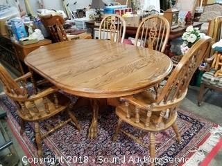 Lot #0046: Vtg. Solid Oak Claw Foot Dining Set