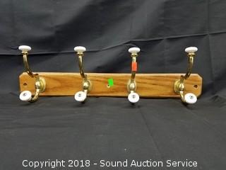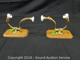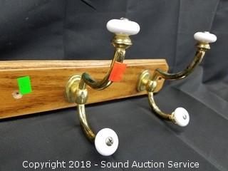 Lot #0048: Wood, Brass & Porcelain Coat Hangers