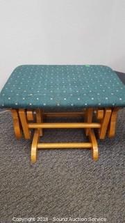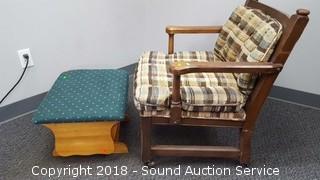 Lot #0115: Wood Upholstered Rolling Chair & Rocking Ottoman