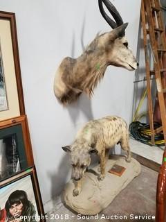 Bill Lee lifetime collection of award winning trophy taxidermy mounts! Includes: Bears, Hyena, Giraffe, Timberwolf, Moose, Caribou, Elk, Kudu, Cape Buffalo, Springbok, Axis Deer, Rusa Deer, Sable Antelope & More! Full bodied mounts, shoulder mounts, antlers, skulls, pelts and a few firearms.
