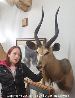 Bill Lee lifetime collection of award winning trophy taxidermy mounts! Includes: Bears, Hyena, Giraffe, Timberwolf, Moose, Caribou, Elk, Kudu, Cape Buffalo, Springbok, Axis Deer, Rusa Deer, Sable Antelope & More! Full bodied mounts, shoulder mounts, antlers, skulls, pelts and a few firearms.