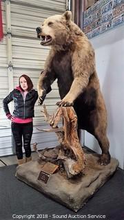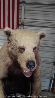 Bill Lee lifetime collection of award winning trophy taxidermy mounts! Includes: Bears, Hyena, Giraffe, Timberwolf, Moose, Caribou, Elk, Kudu, Cape Buffalo, Springbok, Axis Deer, Rusa Deer, Sable Antelope & More! Full bodied mounts, shoulder mounts, antlers, skulls, pelts and a few firearms.