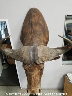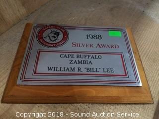 Safari Club Silver Award taken by Bill Lee 1988, comes with award plaque. Approx. 39'' wide horns, 12'' circumference at the base of horn. Overall approx. 44'' deep, 40'' wide & 37'' tall.