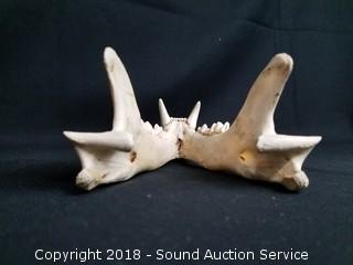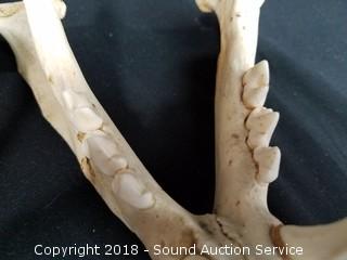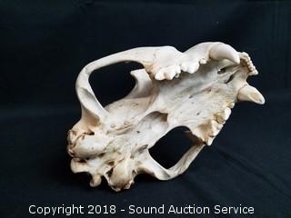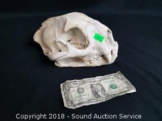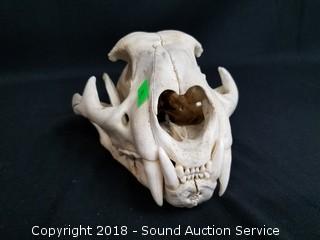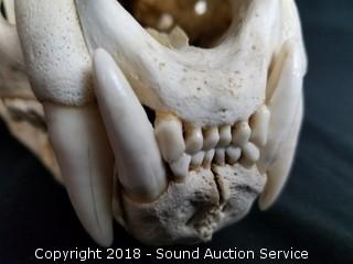 The K-9 Teeth are approx. 1-1\4'' long. The skull is 8-1\2'' long, 6-1\4 wide & 4 1\2''' tall.