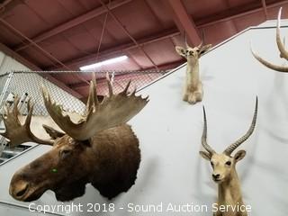 Bill Lee lifetime collection of award winning trophy taxidermy mounts! Includes: Bears, Hyena, Giraffe, Timberwolf, Moose, Caribou, Elk, Kudu, Cape Buffalo, Springbok, Axis Deer, Rusa Deer, Sable Antelope & More! Full bodied mounts, shoulder mounts, antlers, skulls, pelts and a few firearms.
