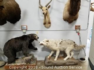 Bill Lee lifetime collection of award winning trophy taxidermy mounts! Includes: Bears, Hyena, Giraffe, Timberwolf, Moose, Caribou, Elk, Kudu, Cape Buffalo, Springbok, Axis Deer, Rusa Deer, Sable Antelope & More! Full bodied mounts, shoulder mounts, antlers, skulls, pelts and a few firearms.