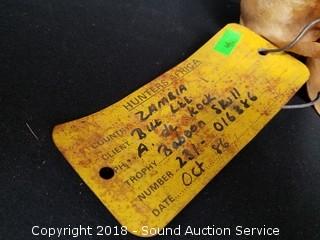 From Zambia Africa. Has a metal Hunters of Africa tag. from 1986. Approx 7" long, 3-1\2'' wide & 3-1\2'' tall.