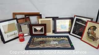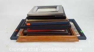 Fits photos approx. 4'' x 6'' to 19.5'' x 9''. Two of the frames are missing the glass and the back.