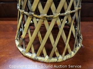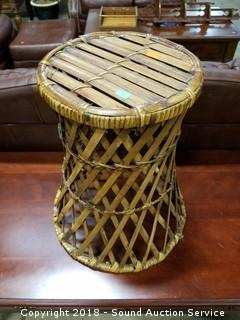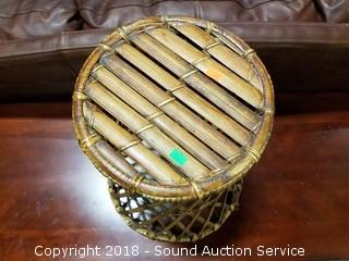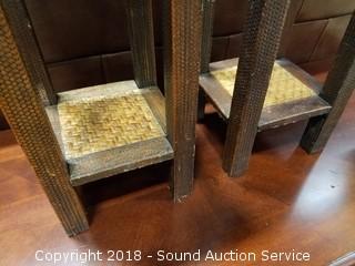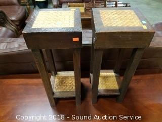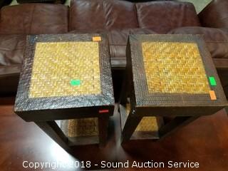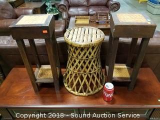 Lot #0014: (2) 2-Tier Accent Tables & Wicker Stand