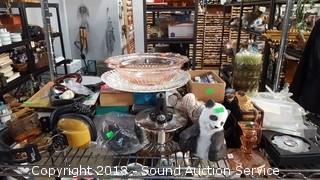 This auction consists of a multiple estates with a variety of different items! Includes a HUGE Block Stamp Collection (Card Stock, Stamps, Punches, Shelves and more), Vtg. Dressers, Curio Cabinets, Vtg. Unique Side Tables, Vtg. Organ, Yard Art Statuaries, Bird Baths, Various Gold, Silver & Fashion Jewelry, Beautiful Original Artwork, Dining Sets, Washer & Dryer, Leather Sofa & Chair Sets, Vtg. Writing Desk, Giant Clam Shell, Pig Figure and Banks Collection, Dansk Dish Set, Various Tools & much more!