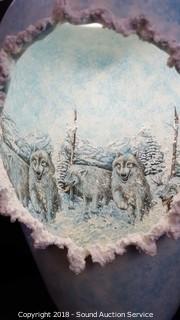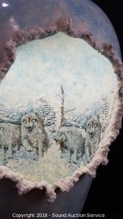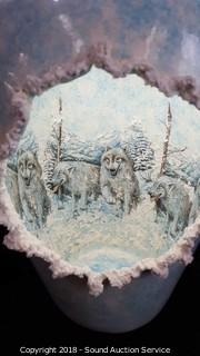 Lot #0211: Handcrafted S/N Wolf Theme Ceramic Vase