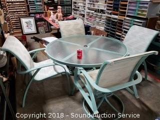2 normal chairs & 2 swivel chairs. Approx. 27" T w/48" diameter.