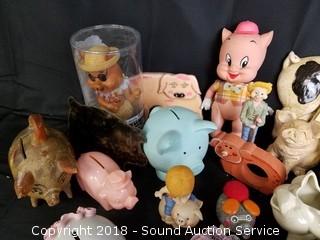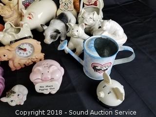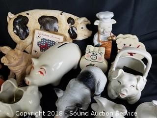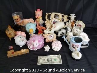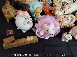 Lot #0257: Pig Figurines, Piggy Banks & Decor
