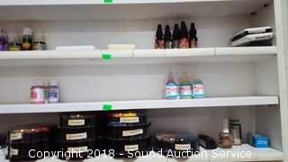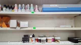 Lot #0406: Shelf w/Ink Pads, Refills & Embossing Powder